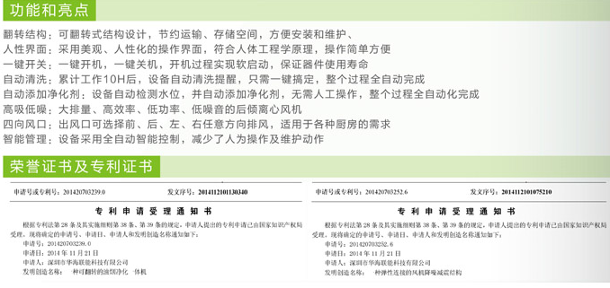 概述:翻轉(zhuǎn)結(jié)構(gòu):可翻轉(zhuǎn)式結(jié)構(gòu)設(shè)計(jì),節(jié)約運(yùn)愉、存儲(chǔ)空間,方便安裝和維護(hù) 自動(dòng)清洗:累計(jì)工作10H后,設(shè)備自動(dòng)油洗提醒,只需一鍵搞定,整個(gè)過(guò)程全自動(dòng)完成